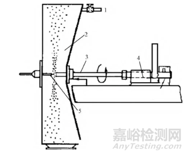 1-棒料;2-等離子發生器;3-液態金屬膜;4-等離子火焰;5-濺射室