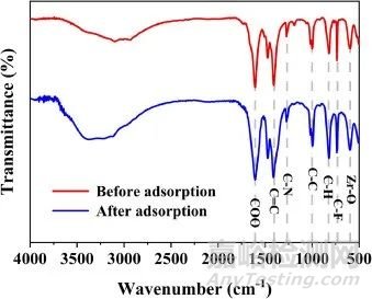 圖6. ZrT-1-F4氟化物吸附前后的FT-IR光譜