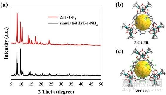 圖7. ZrT-1-F4和ZrT-1-NH2的PXRD圖和分子結構