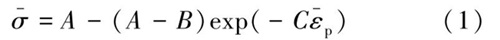采用Mises 屈服準則,通過Voce 模型描述材料的硬化行為,如式(1) 所示。