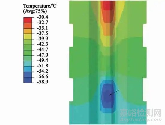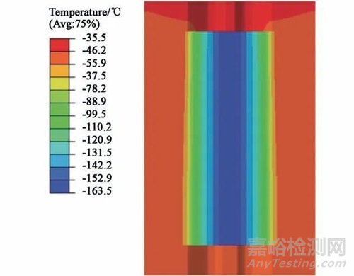 圖11 模具液氮制冷后的溫度場分布