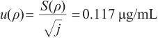 根據(jù)貝塞爾公式計(jì)算實(shí)驗(yàn)的標(biāo)準(zhǔn)曲線擬合引入的標(biāo)準(zhǔn)不確定度為uρ=0.186 6 μg/mL,則由標(biāo)準(zhǔn)曲線擬合引入的相對標(biāo)準(zhǔn)不確定度: