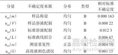 表4 各分量的相對標(biāo)準(zhǔn)不確定度