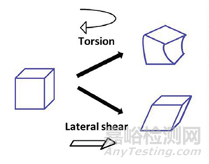 在一個平面上施加的橫向剪切力或扭轉力,填充劑會發生剪切變形。在這種情況下,材料的體積將保持不變,但其形狀將發生變化;