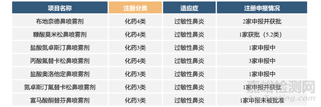 目前申報仿制的鼻噴霧劑品種信息如表1所示,適應(yīng)癥基本集中于過敏性鼻炎。