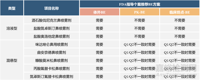 表3 部分鼻噴霧劑產(chǎn)品的FDA指導(dǎo)個案推薦BE方案