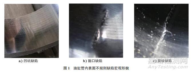2.2 油缸管內表面不規則分布的豁口缺陷