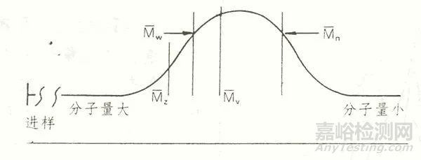 高聚物四種平均分子量在GPC譜圖中的示意圖。