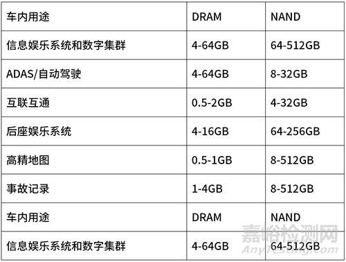具體而言,智能座艙、車聯網、智能駕駛等功能的實現均需要一定的存儲空間來支持其正常運行。以智能駕駛為例,根據鎂光科技及中國閃存市場預計,L2、L3級的自動駕駛汽車對內存帶寬要求大致為100GB/s,對NAND Flash的平均容量需求約為32GB,而未來L4、L5級的全自動駕駛汽車則需要300GB/s-1TB/s的內存帶寬,對NAND Flash的平均容量需求約為256GB。