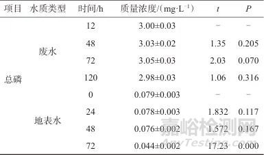 Tab. 7 Verification result of total phosphorus storage time in water quality(n=6)