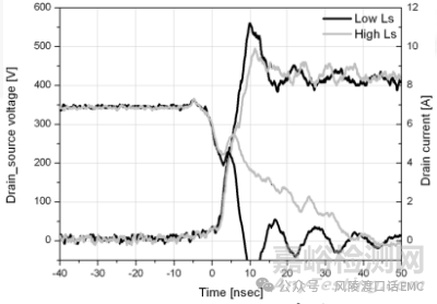 MOSFET源極寄生電感LS值較低時,盡管由于快速轉換速度導致柵源極負電壓和漏源極過沖電壓會稍高,其關斷損耗和柵極振蕩都較低。MOSFET源極寄生電感LS值較高時,關斷損耗和柵極振蕩也較高。