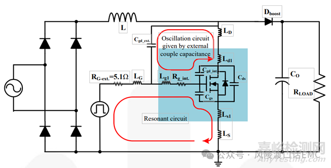 圖8:Boost PFC MOSFET內外部寄生參數等效圖
