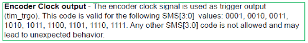 STM32中的很多定時器都帶編碼器接口,在對輸入編碼器信號進行計數的同時,還通過該接口可以將正交編碼器的輸入信號解碼成脈沖輸出映射到TIMx_TRGO,手冊中的原文描述如下: