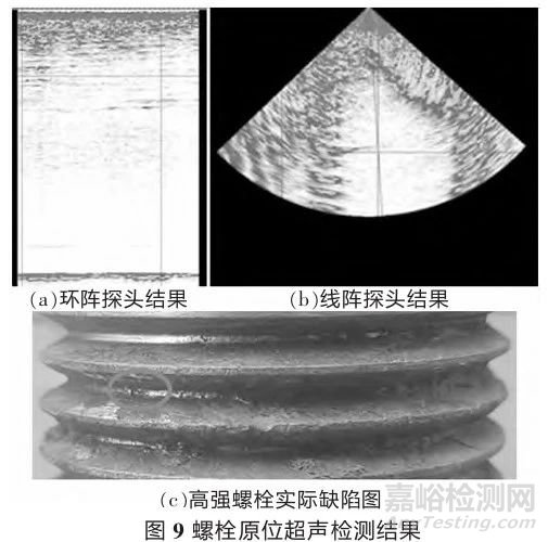 常規和全聚焦相控陣超聲檢測均能滿足螺栓缺陷檢測要求,全聚焦相控陣超聲檢測檢出率高、誤判率低,且工作效率高,但設備價格高,對于長度在400 mm以上的螺栓,檢測能力低于常規相控陣超聲檢測。