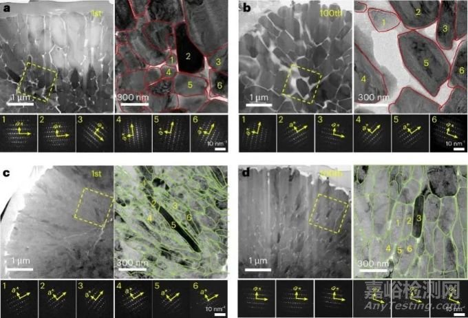 圖5. S-Ni90和SM-Ni90 CAMs在帶電狀態(tài)下裂紋形成行為。