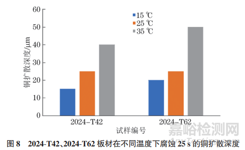 2.4 腐蝕溫度對銅擴散檢測的影響