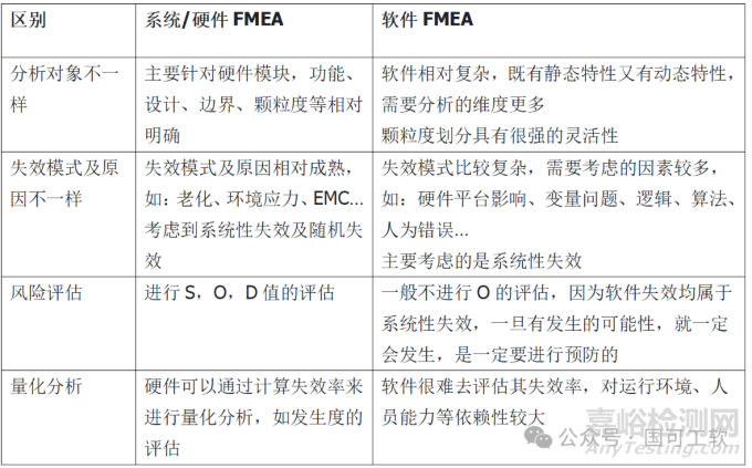 相比于傳統的系統與硬件FMEA,軟件FMEA有諸多差異,起步也較晚,在行業內也沒有形成統一的分析方法。