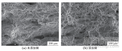 圖 3 未添加和添加鑭試驗鋼的沖擊斷口形貌