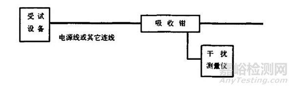測試時,干擾信號的傳輸路徑為:吸收鉗將捕獲的干擾轉換成電流形式,再通過同軸線纜傳輸到測量接收機或者頻譜分析儀。應依次用吸收鉗測量長度超過25cm的屏蔽或非屏蔽連接線,這些連接線是連接至被測設備的各自獨立單元上。需要滑動吸收鉗,依次尋找每條線纜上吸收功率大的位置。該位置的讀數即為這條線纜的大騷擾電平。