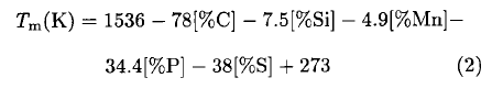 2.2 真空懸浮玻璃包熔下鋼液的過冷度 包熔凈化所用原料Q235鋼的熔化溫度由下式計算得到: