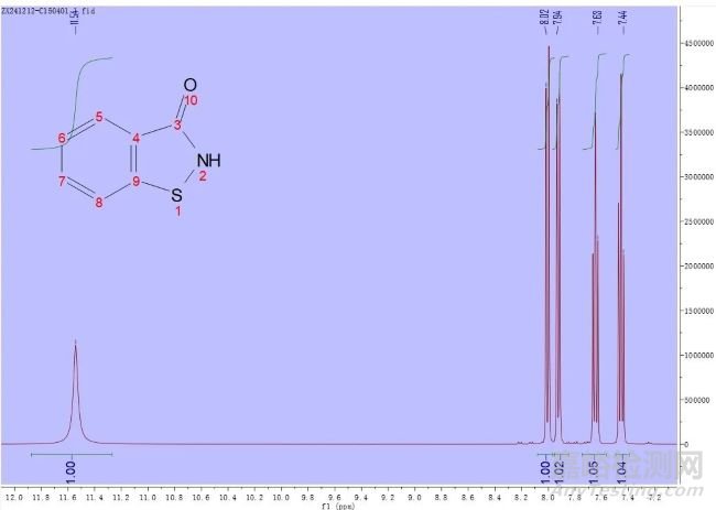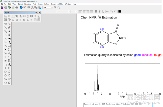可以看到,預測的核磁譜圖大致與之前的分析相同,但需要注意的是由于原子間的相互影響,H原子化學位移與實際的測試譜圖會有一定差別。