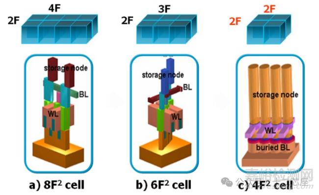 Fig5. (a) 8F2, (b) 6F2, and (c) 4F2 design architecture.