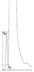 式中:Hp為小峰平行外推基線的高度;Hv為小峰和大峰間曲線最低點平行外推基線的高度。 |