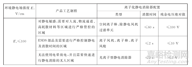 表 B.4 不同場(chǎng)景下離子化靜電消除器配置