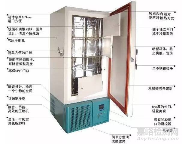 大部分超低溫冰箱采用的是重疊式壓縮機系統(cascade compressor system),也就是其中一臺壓縮機接著令溫度下降至超低溫,如-86℃。另外一種就是雙保險冰箱是利用兩套完全獨立的壓縮機進行制冷。超低溫冰箱可用于保存藥物、疫苗、酶、激素、干細胞、血小板以及從人體抽取的標本、植物種子的種質庫、基因克隆庫和一些重要的生物和化學試劑等的儲存。
