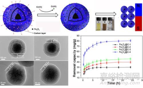 六價鉻是環境中普遍存在的一種毒性重金屬離子,具有致癌、致畸、難降解和生物累積性等危害,威脅生態環境和人類健康。近年來,利用納米材料去除六價鉻成為環境領域的研究熱點,其中磁性碳納米材料由于易回收和成本低而受到青睞,然而現有方法制備的磁性碳納米材料具有碳層薄和活性基團缺乏等缺陷,難以發揮其對六價鉻的去除潛能,嚴重制約了該材料的應用。因此,制備可高效去除六價鉻的厚碳層、功能化的磁性多孔材料是環境和材料研究領域關注點之一。